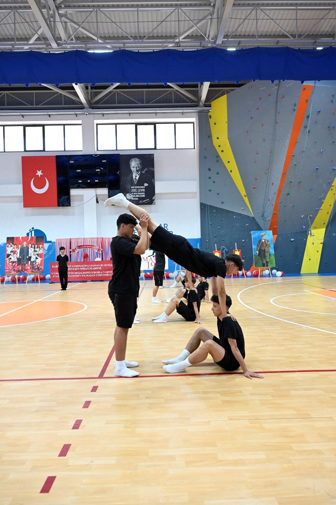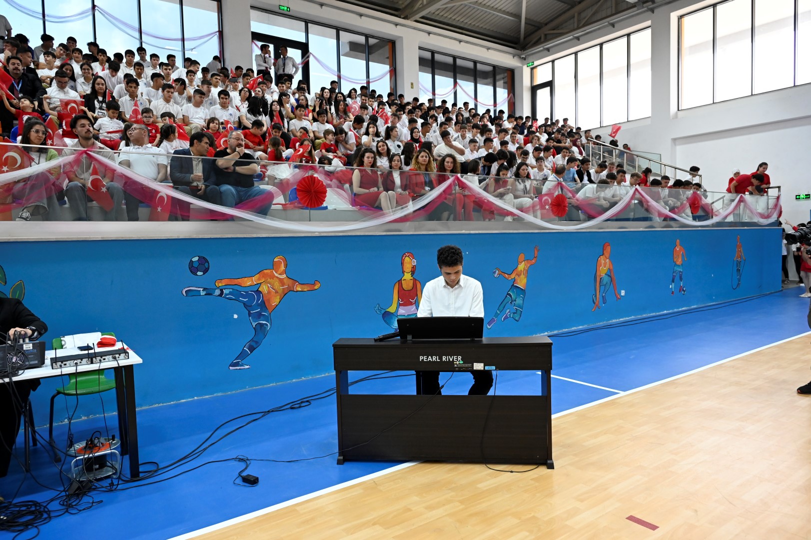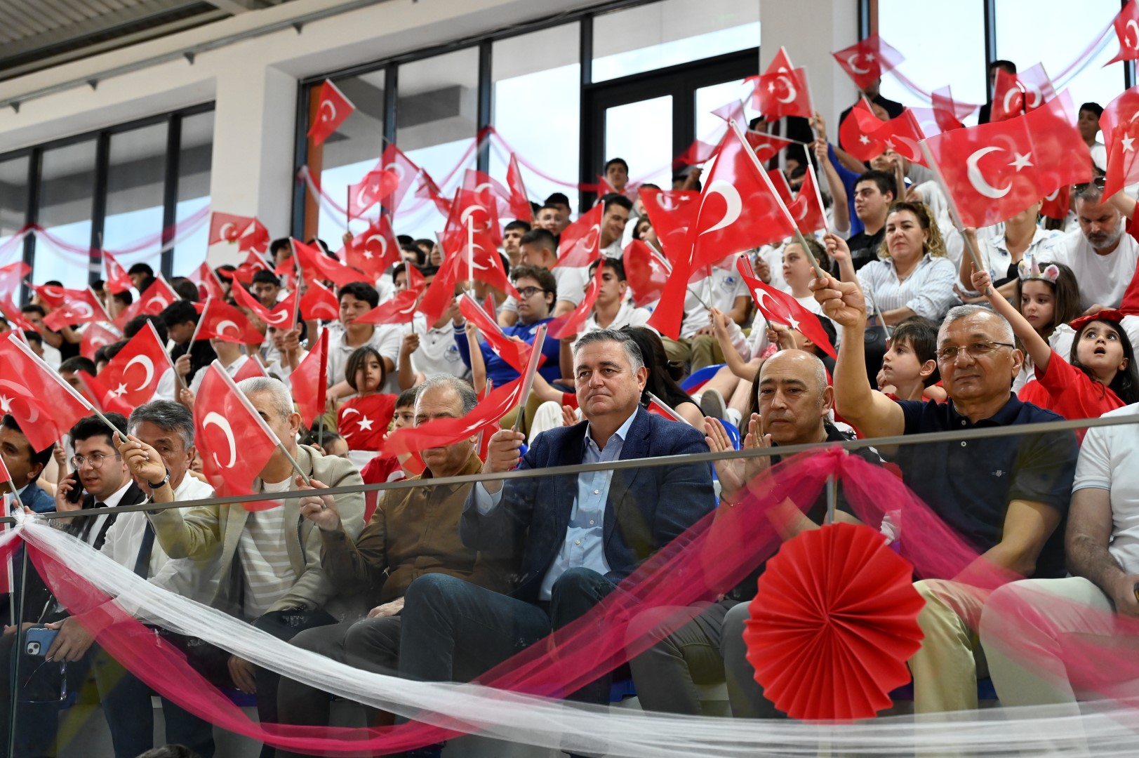 Bayram havasında geçen Törene Antalya OSB Başkanı Hasanali Gönen, Eğitim Komisyonu Başkanı Mustafa Gizli, Eğitim Komisyonu Üyeleri, Antalya Organize Sanayi İş İnsanları Derneği Başkanı Mehmet Atılgan, Genç Organize Sanayi Derneği Başkanı Ebubekir Tulpar, Bölge Müdürü İlhan Metin, okul yöneticileri, öğretmenler ve veliler katılım sağladı. Ayrıca Antalya OSB Kreş ve Gündüz Bakımevi’nde eğitim gören 40 minik öğrenci de törene misafir olarak katıldı. Minikler, abi ve ablalarının sahnedeki gösterilerini büyük bir heyecan ve coşkuyla izledi. Saygı duruşu ve İstiklal Marşı’nın ardından, günün anlam ve önemine dair konuşmayı Antalya OSB Başkanı Hasanali Gönen yaptı. Gönen konuşmasında şu ifadelere yer verdi: “19 Mayıs 1919, Gazi Mustafa Kemal Atatürk’ün Samsun’a çıkarak kurtuluş mücadelesini başlattığı tarihtir. Bu tarih, sadece bir başlangıç değil; aynı zamanda milletimizin özgürlük ve bağımsızlık uğruna verdiği destansı mücadelenin simgesidir. Atatürk, bu anlamlı günü gençliğe armağan ederek, Türkiye Cumhuriyeti'nin geleceğini genç nesillere emanet etmiştir. Çünkü gençlik, bir milletin yarınıdır. Güçlü, bilinçli ve vatanına bağlı gençler, geleceğimizin teminatı, yarınlarımızın umududur.” Törende öğrenciler tarafından hazırlanan şiir dinletisi, müzik performansları, halk oyunları ve oratoryo gösterileri büyük beğeni topladı. Programın en dikkat çeken bölümlerinden biri ise beden eğitimi öğretmenlerinin rehberliğinde sahnelenen dans ve aerobik gösterileri oldu. Öğrencilerin enerjik performansı, salondaki izleyicilerden uzun süre alkış aldı. Törenin sonunda tüm salon, hep bir ağızdan “İzmir’in Dağlarında Çiçekler Açar” ve “10. Yıl Marşı”nı söyledi, Türk bayraklarıyla görsel bir şölen oluşturdu. Salonun dört bir yanında hissedilen coşku, bayramın ruhunu en güçlü şekilde yansıttı. Ali Bahar AOSB Teknik Koleji, milli bayramlarımızın anlam ve değerini yaşatmaya, öğrencilerini tarih bilinci ve Cumhuriyet ruhuyla yetiştirmeye devam ediyor.